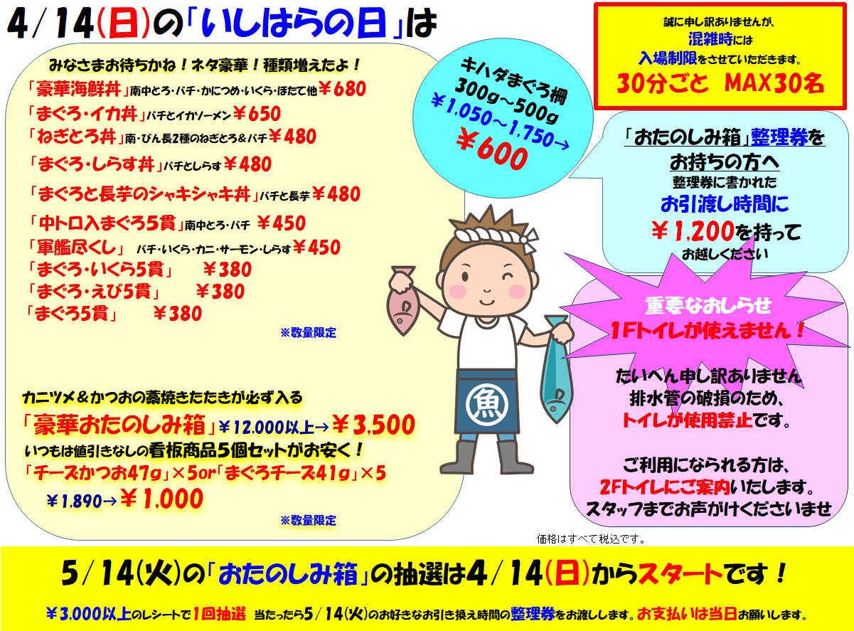 「いしはらの日」ここをチェック!土曜日だからより一層お得ですよ!