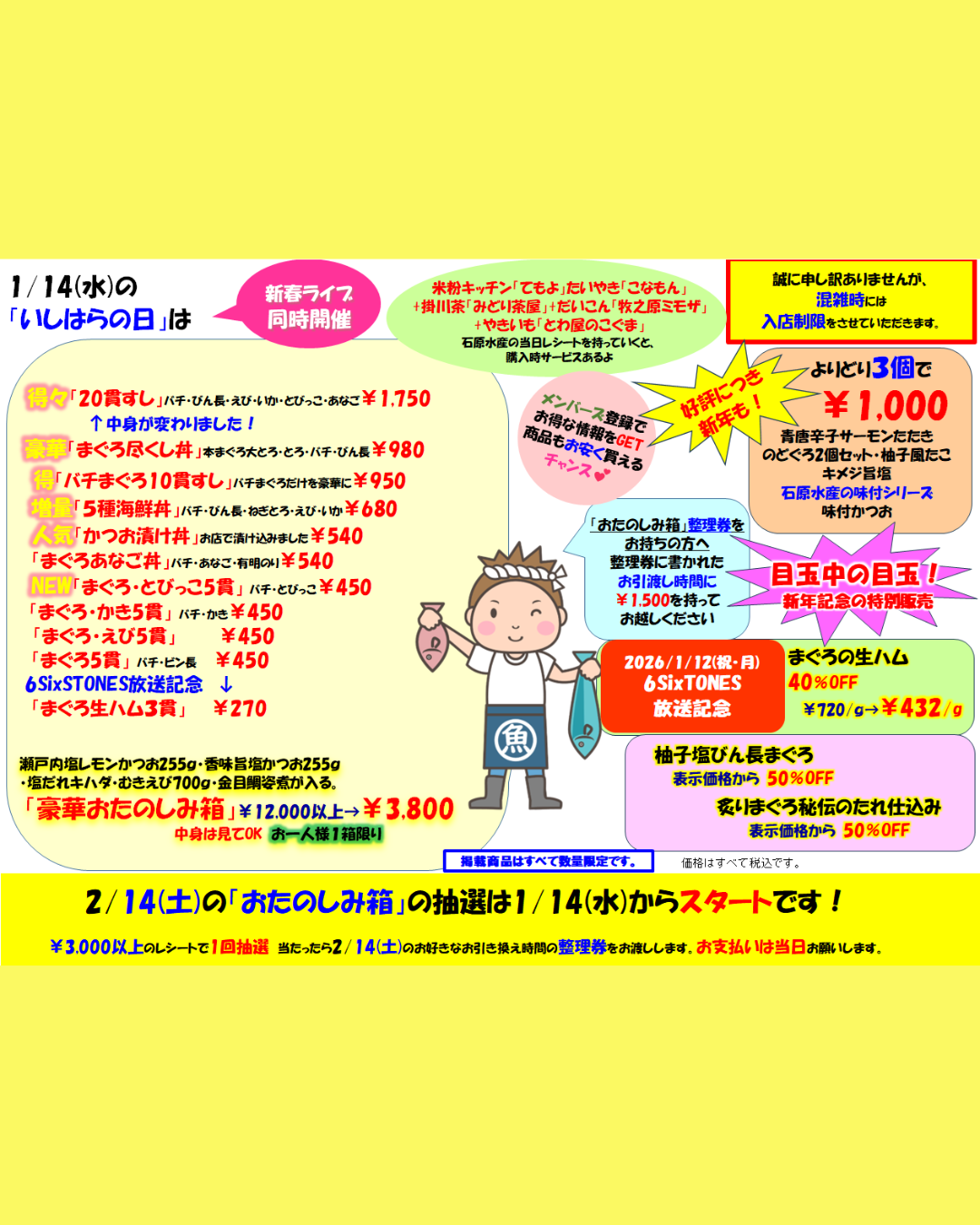▶2026年1月14日 「いしはらの日」🐟 「新春ライブ」🎤同時開催。出店もあるよ💕